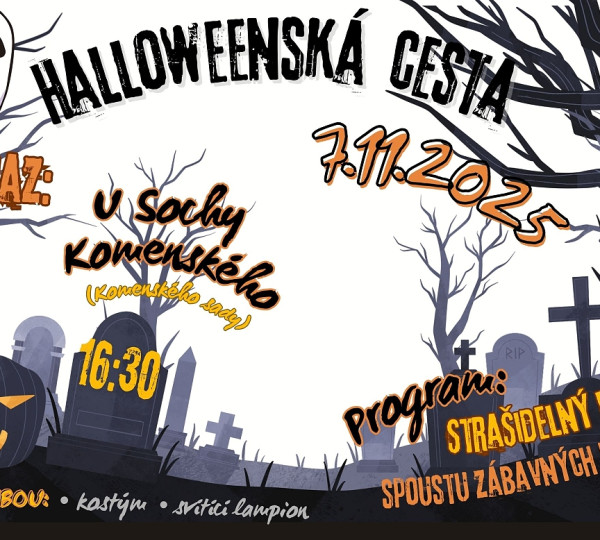 v pátek 7. listopadu 2025 vás srdečně zveme na Halloweenskou cestu plnou kouzel, tajemství a hodných strašidel.