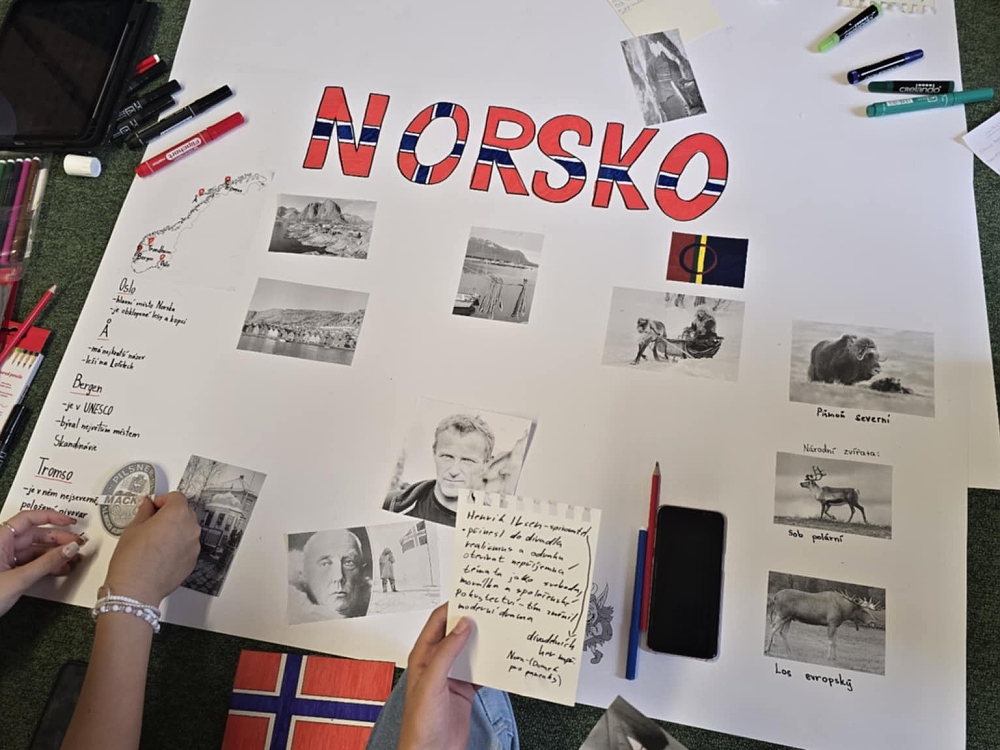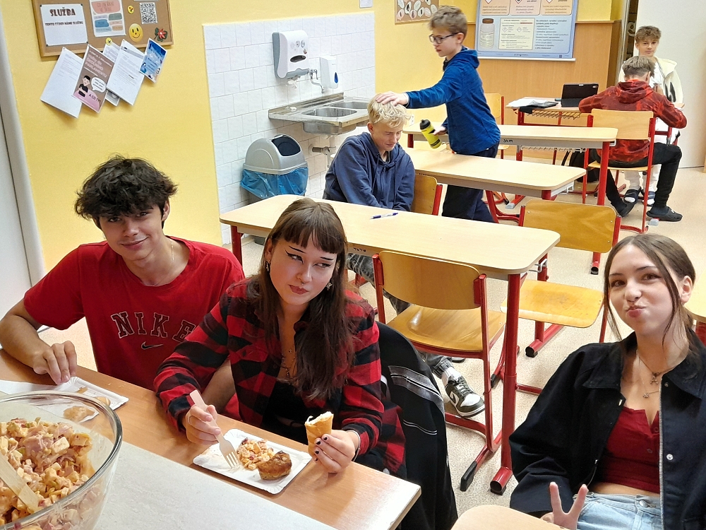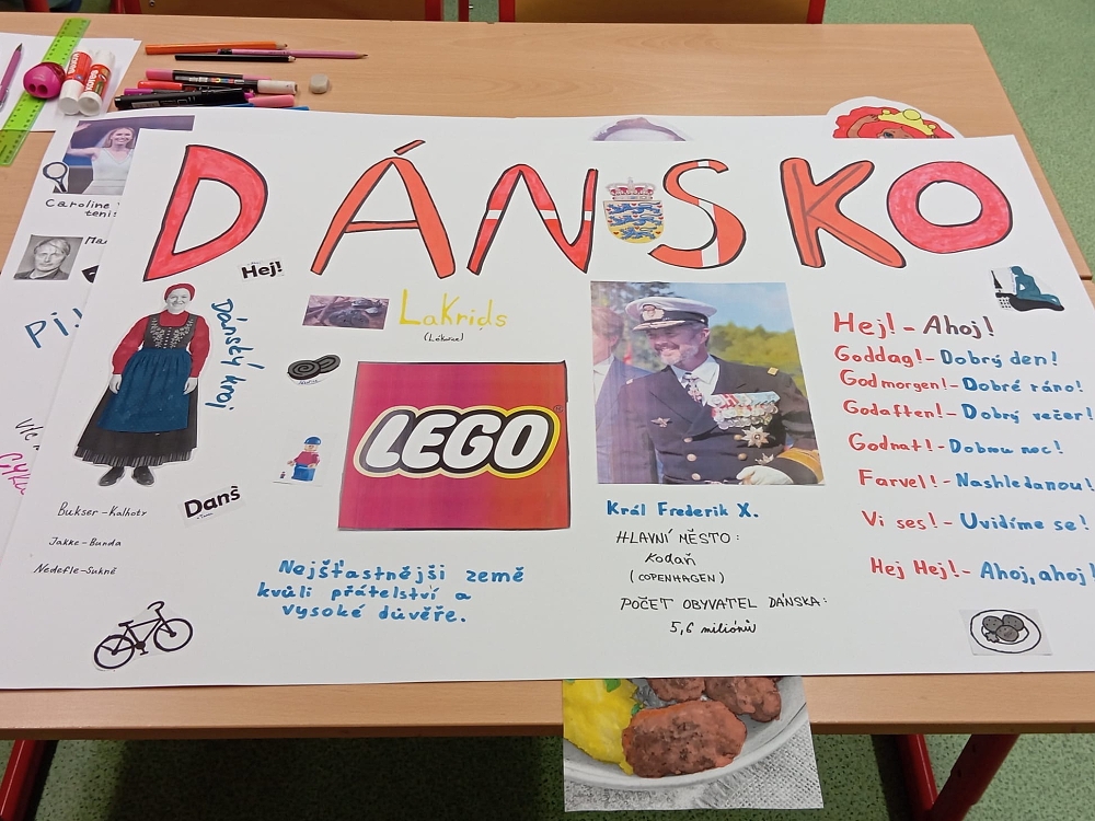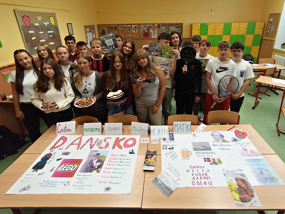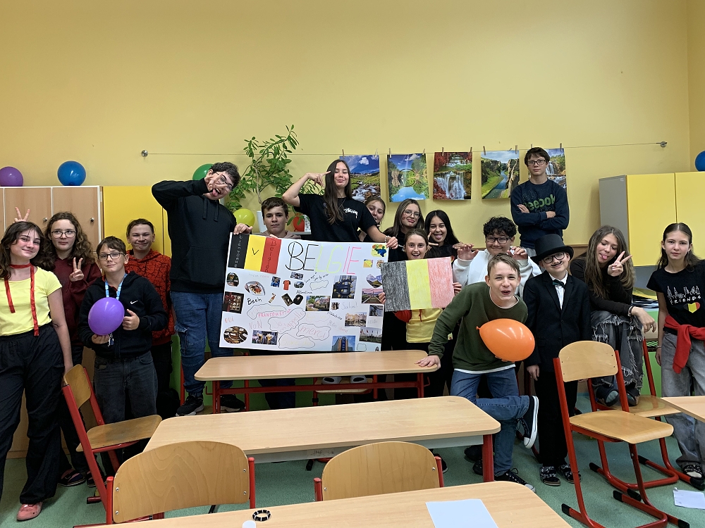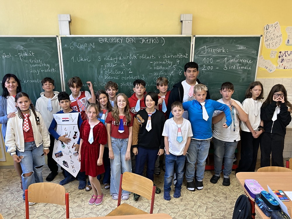 25. září jsme se opět připojili k oslavám Evropského dne jazyků, který si klade za cíl podporovat jazykovou rozmanitost, mezikulturní porozumění a celoživotní učení jazyků. V naší škole se tento den nesl v duchu objevování, spolupráce a zábavného poznávání. Žáci všech ročníků II. stupně se zapojili do projektového dne, jehož hlavním úkolem bylo získat informace o evropských státech, jejich zajímavostech a kulturním pozadí. Každá třída si vylosovala jeden evropský stát – od Litvy přes Rumunsko až po Belgii, který celý den reprezentovala, připravila ukázky typického jídla, oblékla se do barev státních vlajek, připravila plakát plný fotek, vlajek, informací, přepisů základních frází. Následně se naši žáci zúčastnili evropského jarmarku, kde si navzájem vyměňovali informace o státech za správné odpovědi na různé otázky z celé škály předmětů.