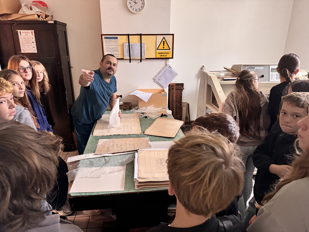 Průvodci žákům poutavě vysvětlili, jakým způsobem se dokumenty archivují, proč je důležité chránit historické materiály a jak se s nimi pracuje. Žáci si mohli zblízka prohlédnout staré kroniky, listiny a mapy, které uchovávají příběhy města sahající stovky let do minulosti. Velký zájem vzbudila také návštěva knihařské dílny, kde se staré dokumenty opravují a pečlivě obnovují, nebo návštěva „černé“ komory pro vyvolávání fotografií. V depozitáři pak žáci objevovali dlouhé řady regálů plných archiválií — skutečný „poklad“ historie města.