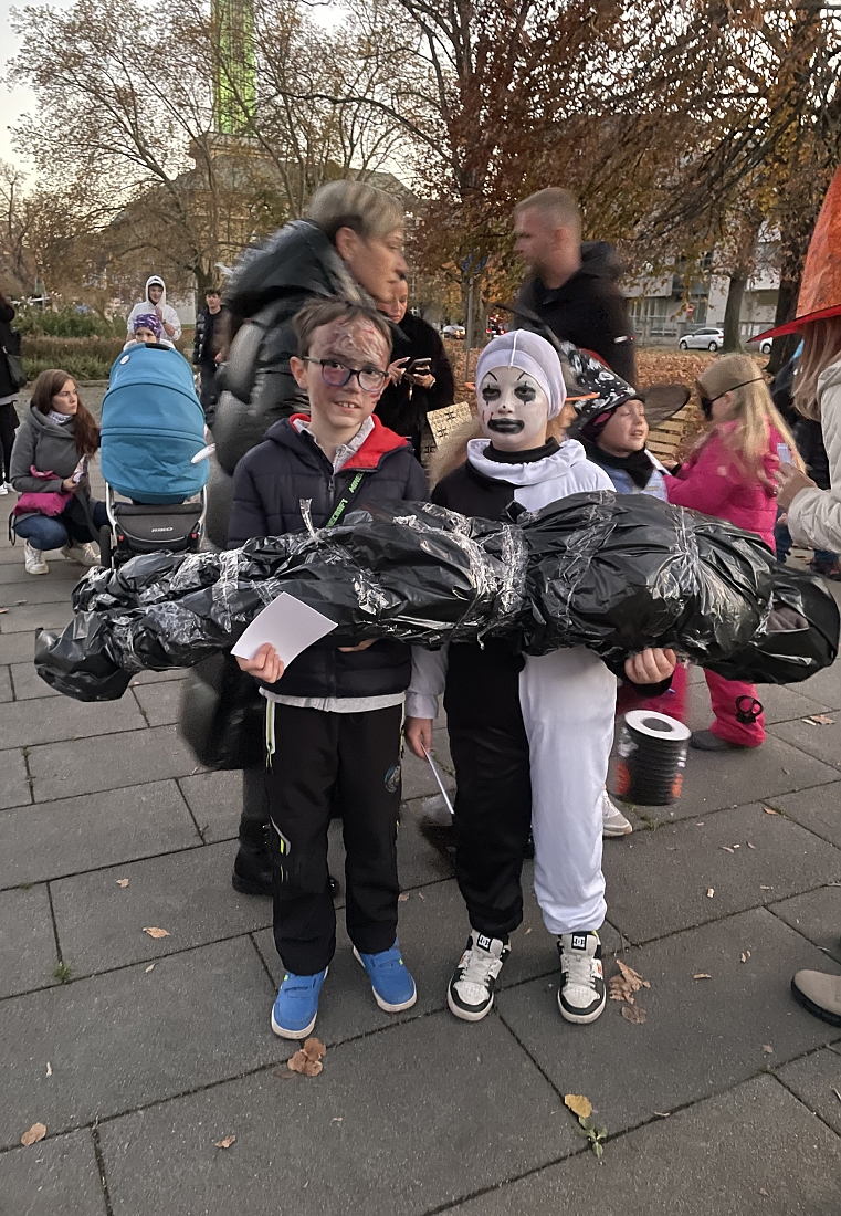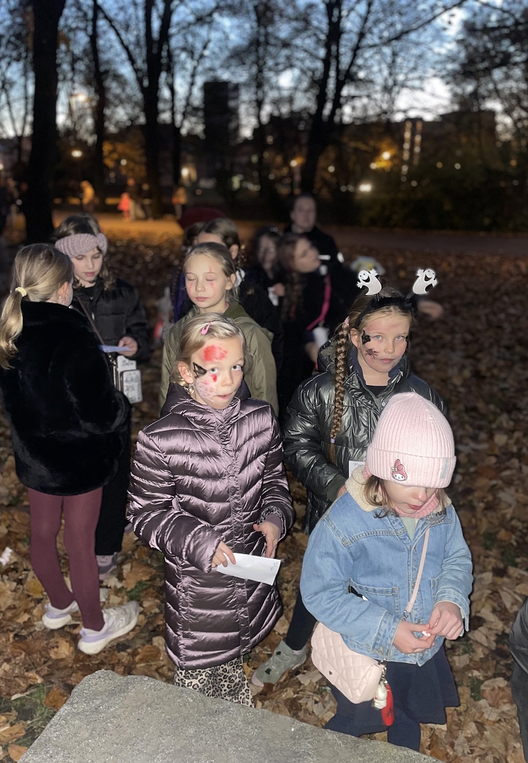 V pátek 7. listopadu se z Komenského sadů až do budovy na ul. Matiční 5 vydala naše tradiční Halloweenská cesta. U bysty Komenského čekala na děti řada stanovišť s úkoly, které si z velké části připravily samy děti ze Školního parlamentu spolu se svými kamarády. Celkem se sešlo neuvěřitelných 213 dětí v doprovodu rodičů. Tato skvělá účast potěšila všechny organizátory.