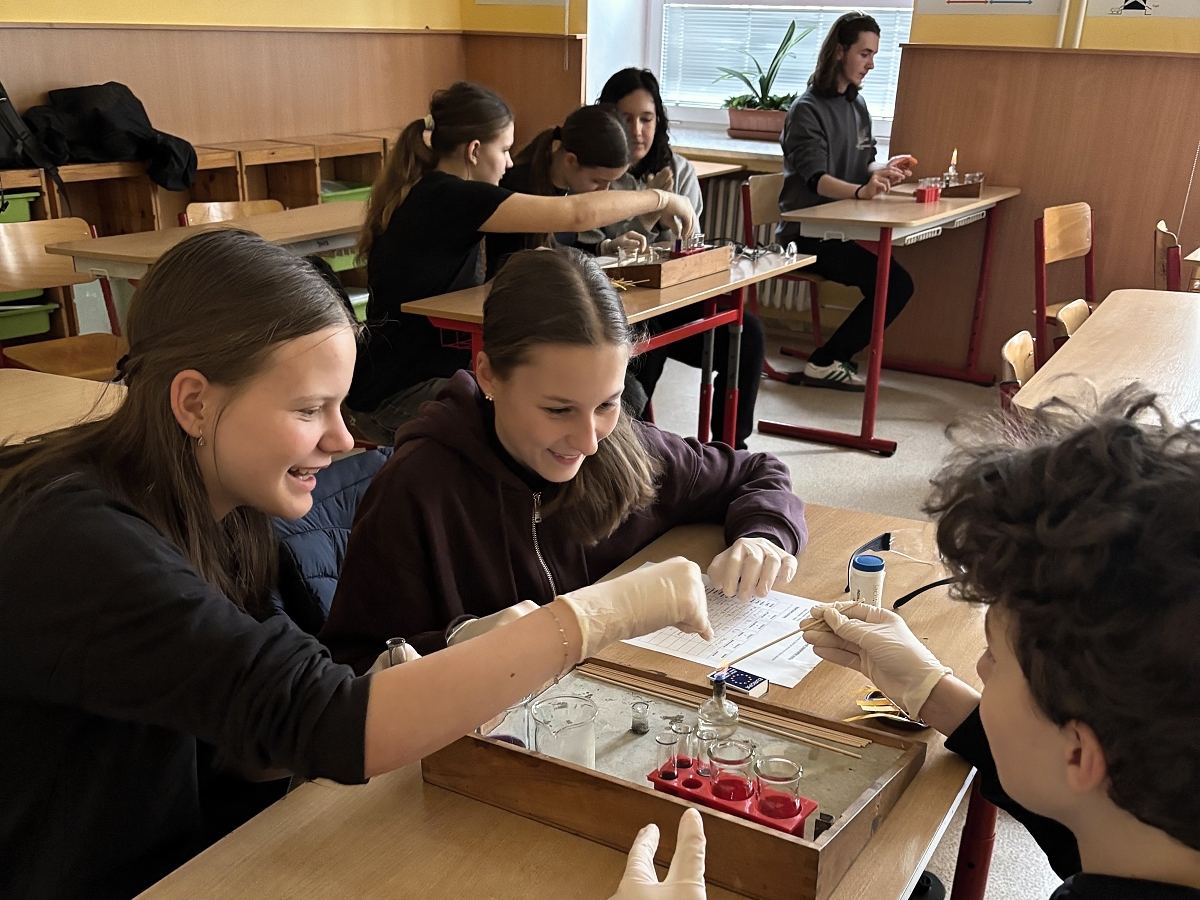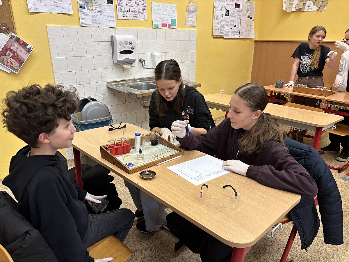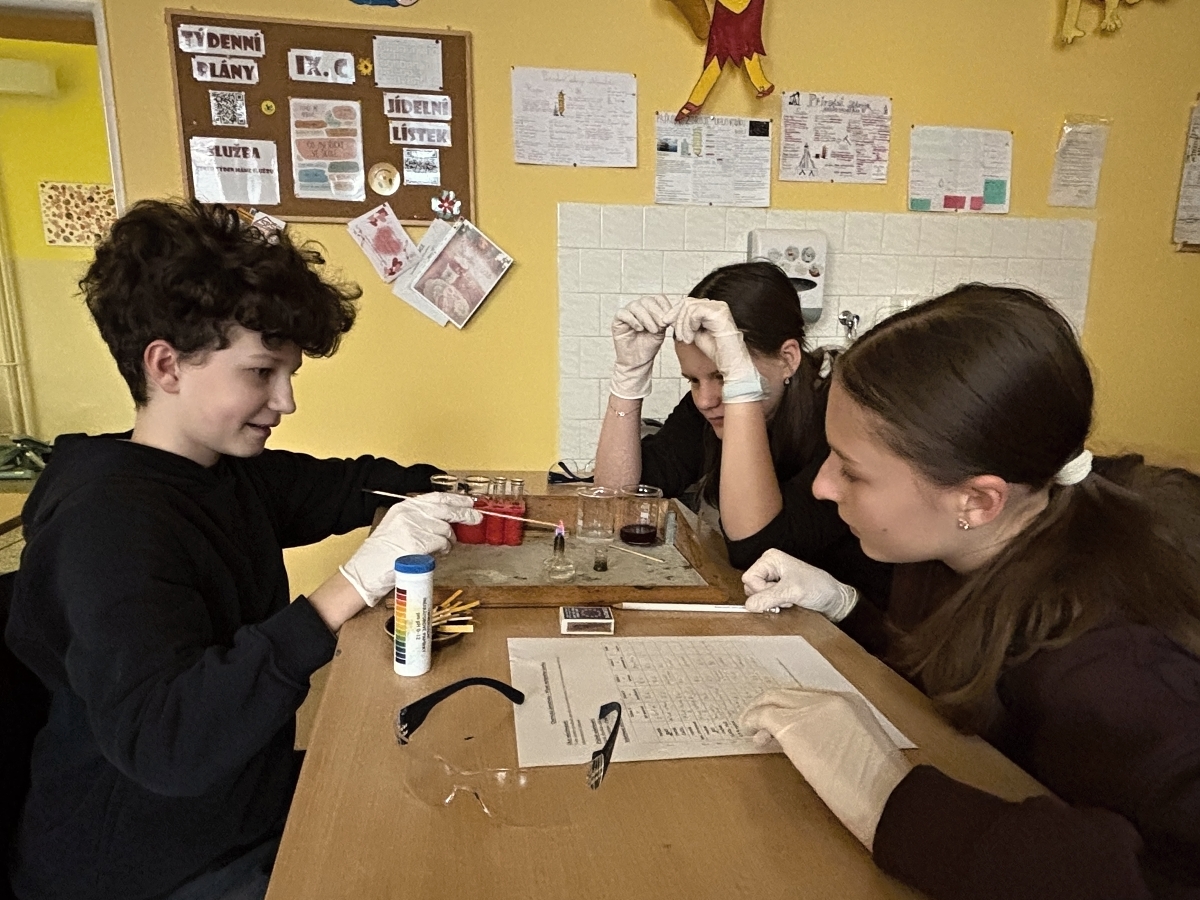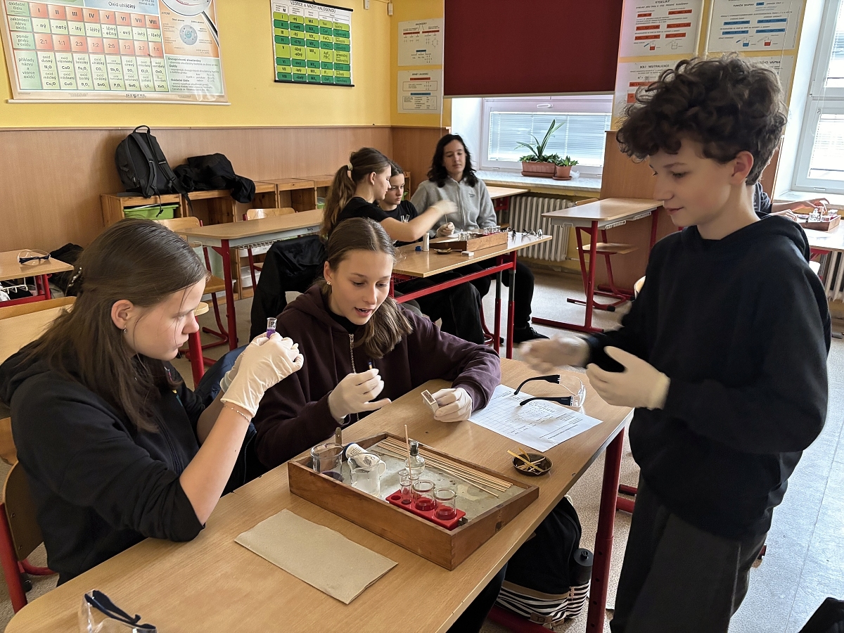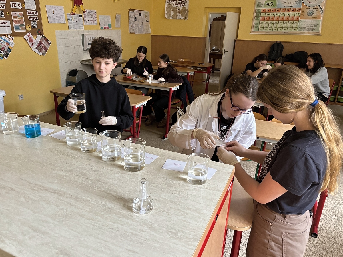 Třetí odpoledne bylo zaměřeno na chemii a neslo název „Chemická detektivka – Případ neznámého vzorku“. Žáci se proměnili v opravdové detektivy a pomocí jednoduchých chemických pokusů, práce s indikátory a barvení plamene pátrali po identitě tajemného vzorku. K dispozici měli devět vzorků známého složení, se kterými porovnávali výsledky pokusů, a na jejich základě určovali složení posledního, desátého neznámého vzorku. Všichni se ukázali jako výborní detektivové a úkol zvládli na výbornou.
