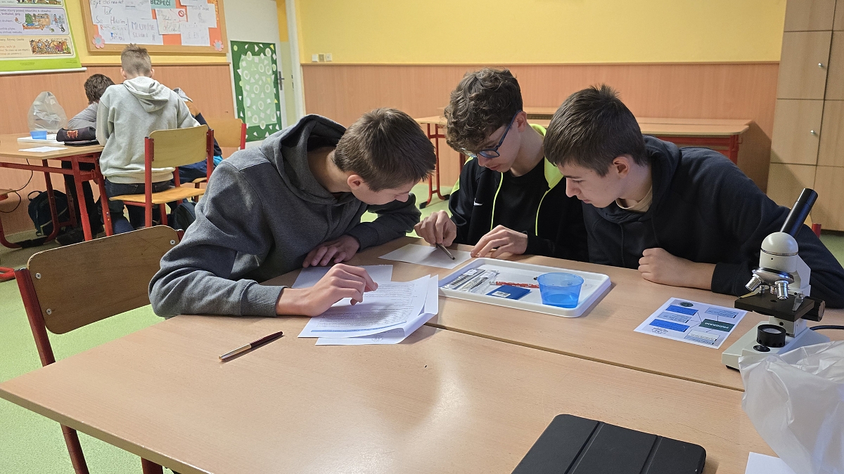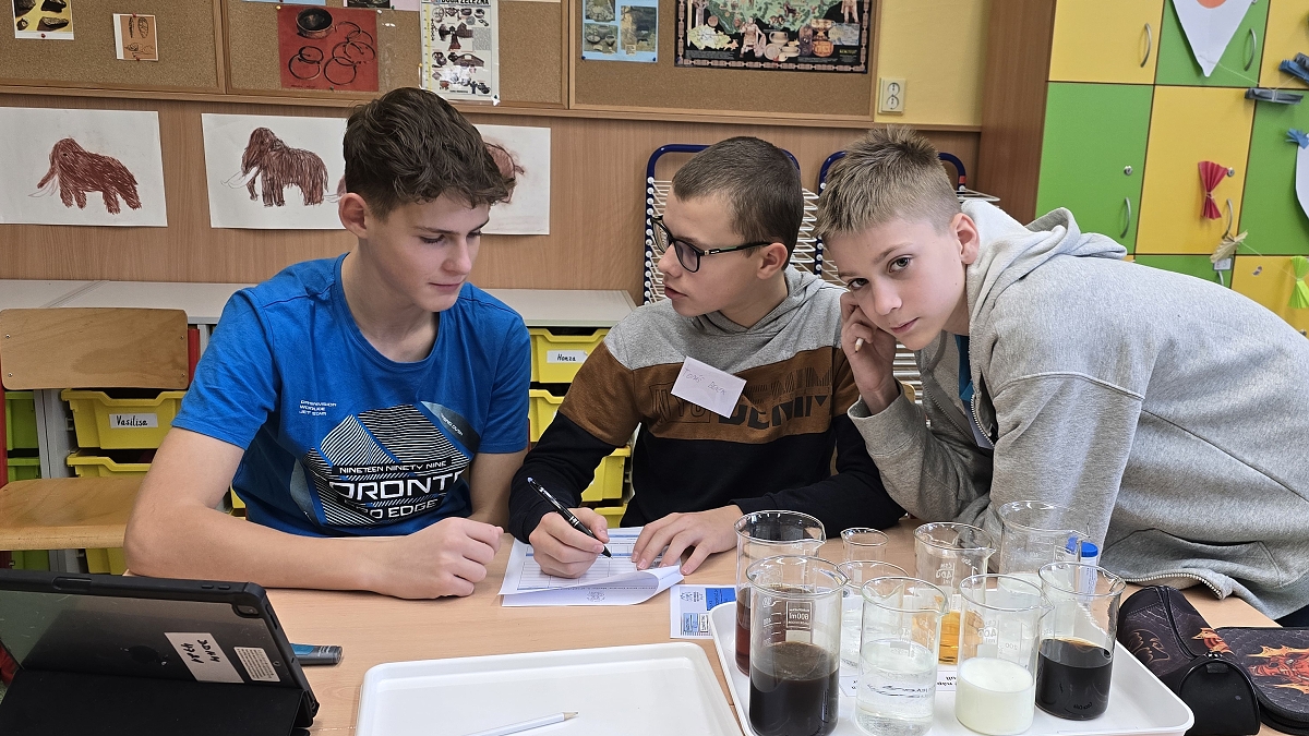Tříčlenné týmy se během dopoledne pustily do různorodých badatelských aktivit, které žáky nejen zaujaly svou pestrostí, ale zároveň je přiměly zamyslet se nad některými tématy z jednotlivých oborů.