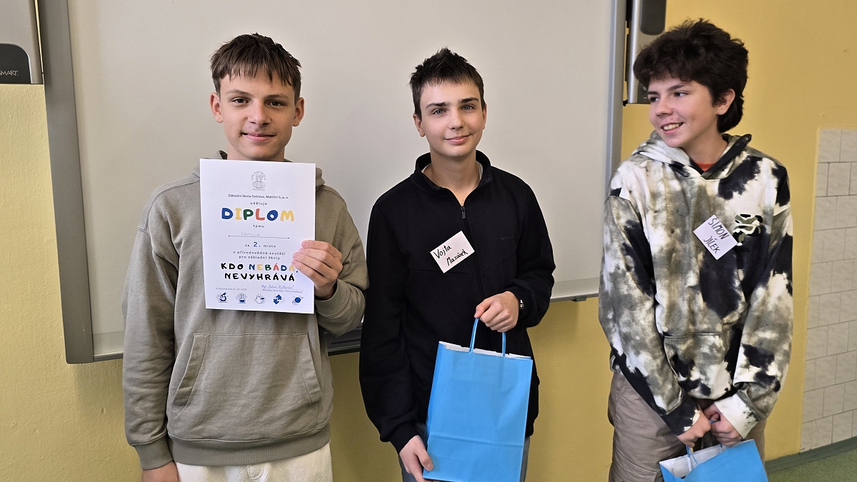 V úterý 21. října 2025 se v prostorách budovy 2. stupně naší školy konala přírodovědná soutěž Kdo nabádá, nevyhrává, které se zúčastnilo celkem jedenáct ostravských škol. Soutěž pořádala naše škola a úkolem žáků bylo porovnat své znalosti a dovednosti ve čtyřech přírodovědných disciplínách – zeměpisu, chemii, přírodopisu a fyzice.