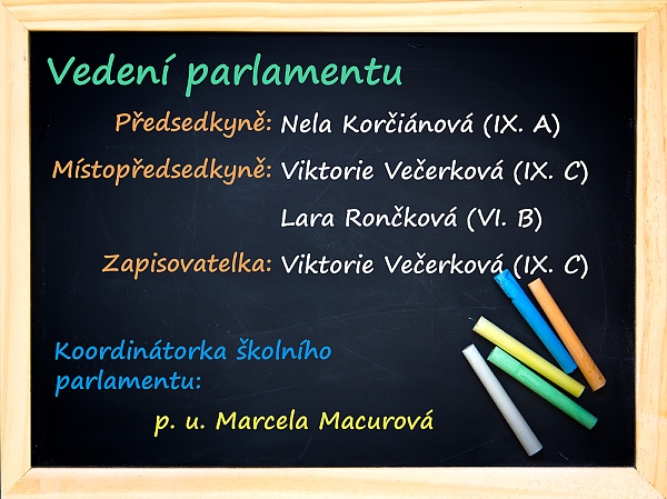 - Struktura školního parlamentu: Rozdělení parlamentu na dvě samostatné části – pro 1. a 2. stupeň – se ukázalo jako výborné rozhodnutí. Díky tomu bylo možné lépe reagovat na potřeby různě starých žáků a organizace celého fungování byla přehlednější a efektivnější. Velké poděkování patří paní učitelce Martině Kalusové, která se významně podílela na přípravě a realizaci mnoha společných akcí, stejně tak paní učitelky Wágnerová a Ratajská se postaraly o organizaci mnoha aktivit.
