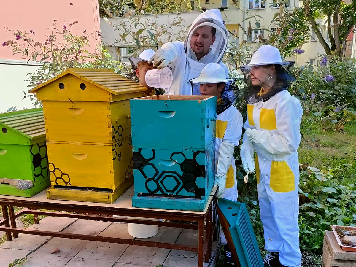 Velké poděkování v této souvislosti patří panu učiteli Radku Fantovi a paní učitelce Karin Hozové, kteří včelám věnovali velké množství času, energie a péče. Díky jejich trpělivé a odborné práci se včely na školním pozemku mohly stát realitou. Neméně důležitou roli sehráli také žáci z pěstitelsko-chovatelského kroužku, kteří se na péči o včely aktivně podílejí.